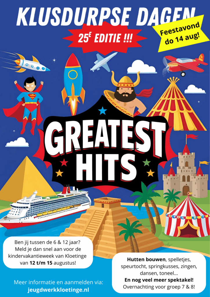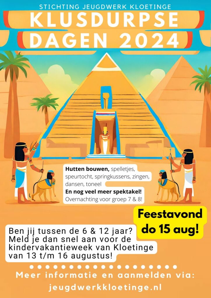 In de laatste week van de schoolvakantie gaan we weer een week vol activiteiten organiseren voor kinderen van 6 t/m 12 jaar. De kindervakantieweek van Kloetinge vindt plaats van dinsdag 22 augustus t/m vrijdag 25 augustus.